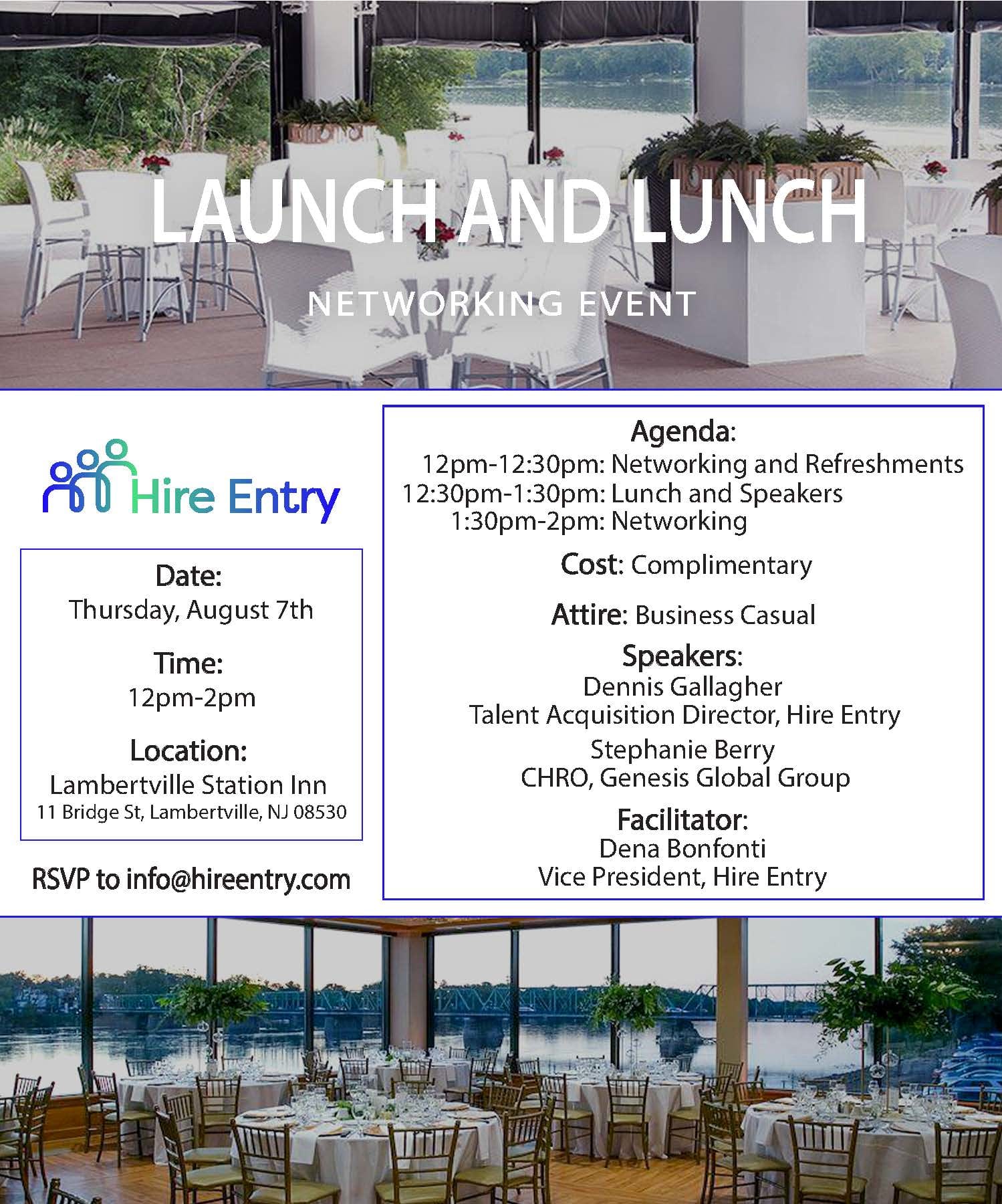 Please join us as we officially launch Hire Entry, a proactive job platform located in Mercer County. This event will be located at the Banquet Hall along the Delaware River, behind The Lambertville Station Inn restaurant.