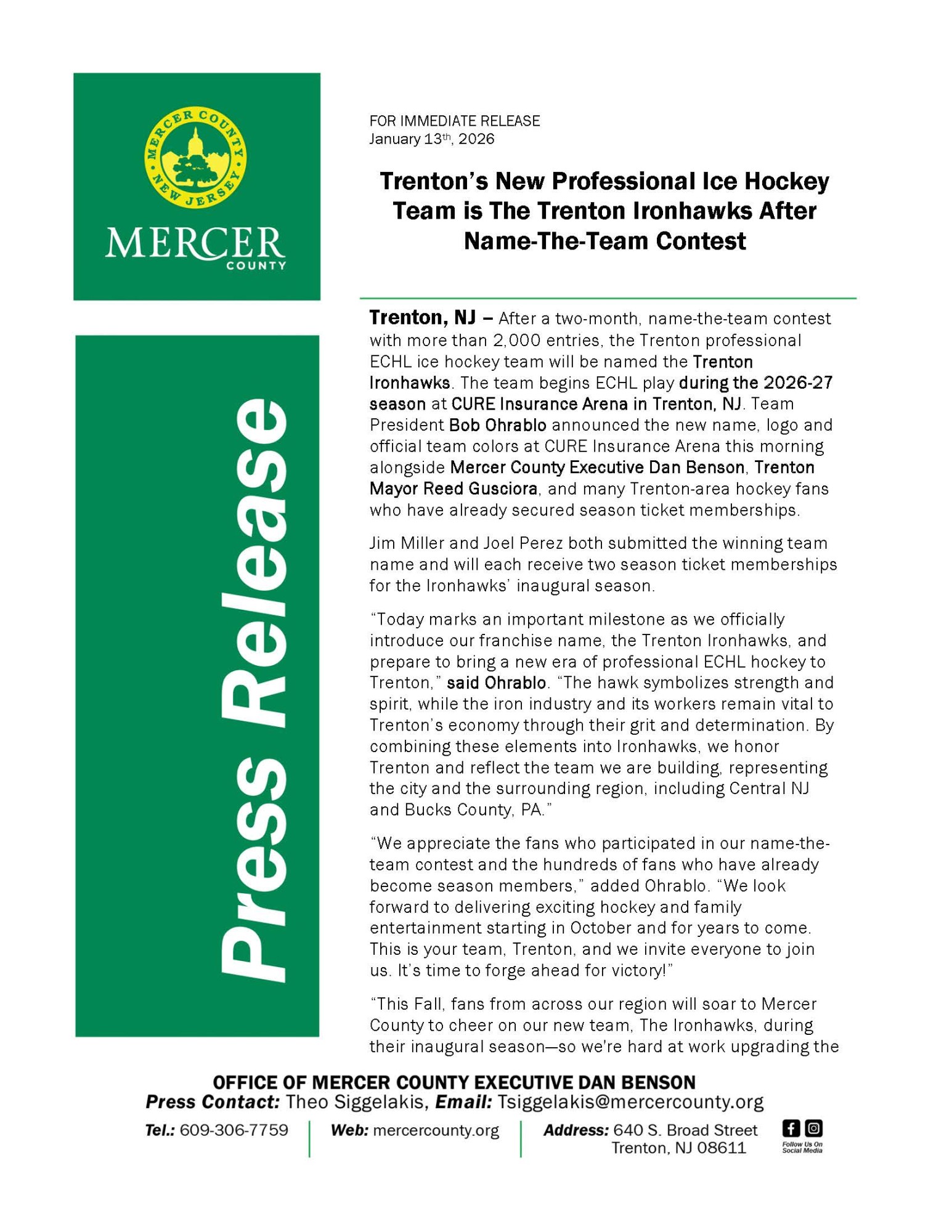 Trenton's New Professional Ice Hockey Team is The Trenton Ironhawks After Name-The-Team Contest Back to Member News Trenton's New Professional Ice Hockey Team is The Trenton Ironhawks After Name-The-Team Contest By Jordyn Whited 1/13/2026 Images × Share × Email Facebook LinkedIn X Pinterest Powered By GrowthZone